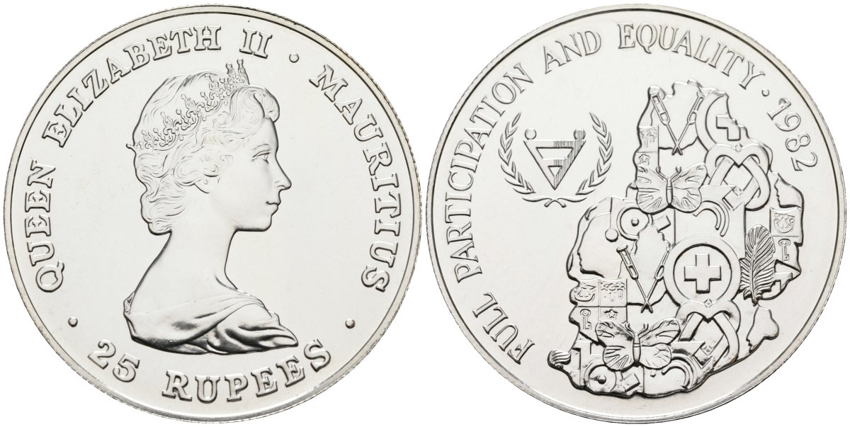 Маврикий 25 рупий 1982 международный год инвалидов, тираж 11000 экз. KM 49 серебро UNC 1078-5-62