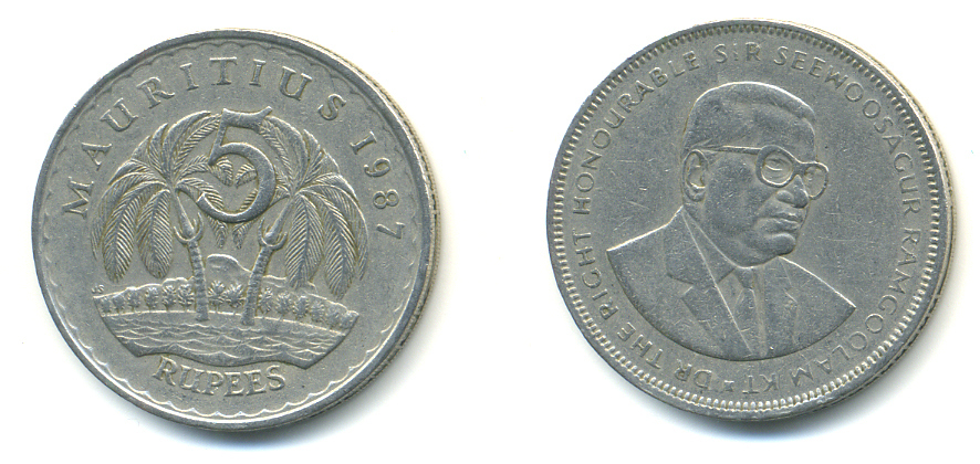 Маврикий 5 рупий 1987 Сивусагур Рамгулам KM 56 медно-никель 179-115