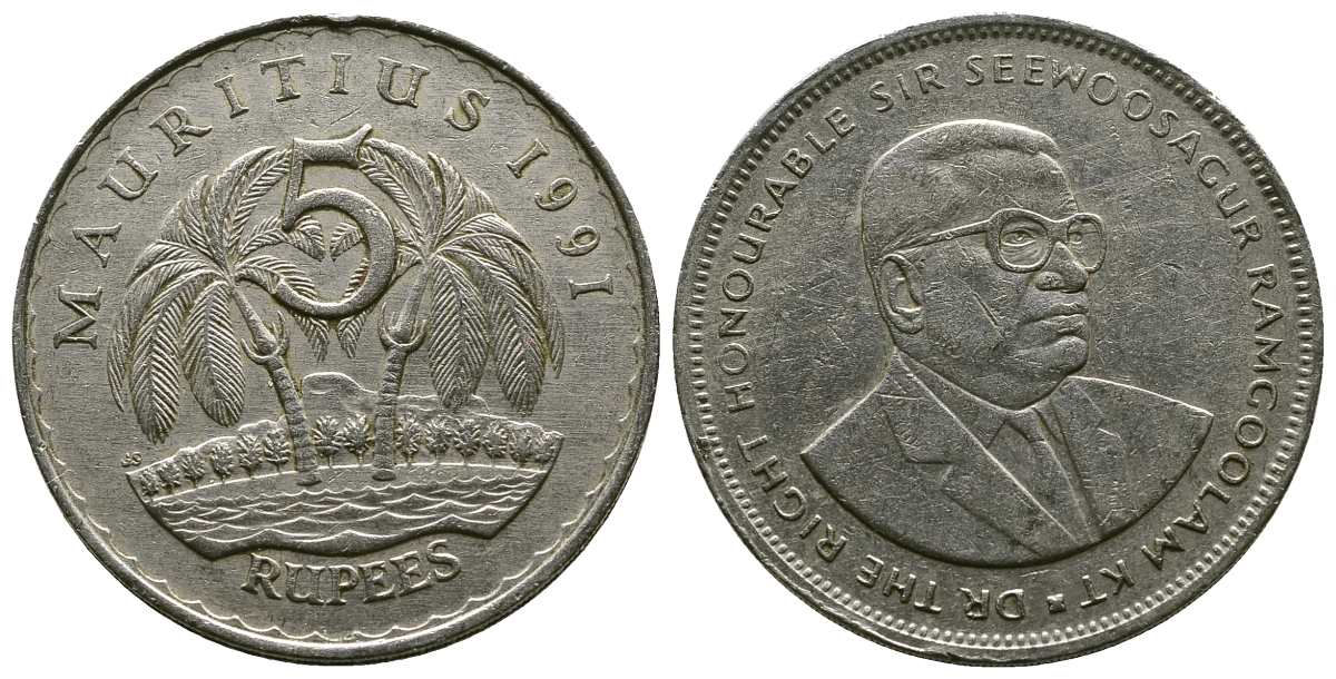 Маврикий 5 рупий 1991 Сивусагур Рамгулам KM 56 медно-никель 4381-231