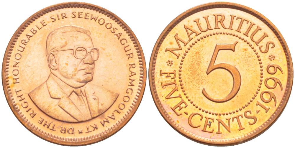 МАВРИКИЙ 5 ЦЕНТОВ 1999 СИВУСАГУР РАМГУЛАМ KM 52 сталь плакированная медью 4544-254