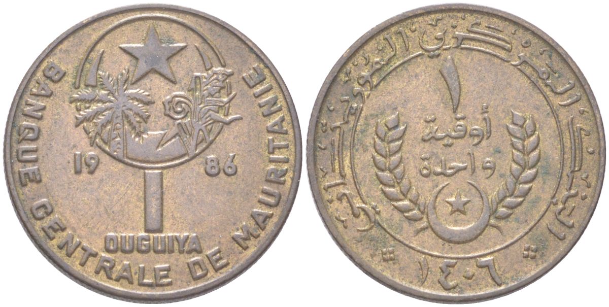 Мавритания 1 угия 1986 самый редкий год выпуска KM 6 алюминиевая бронза 4614-422