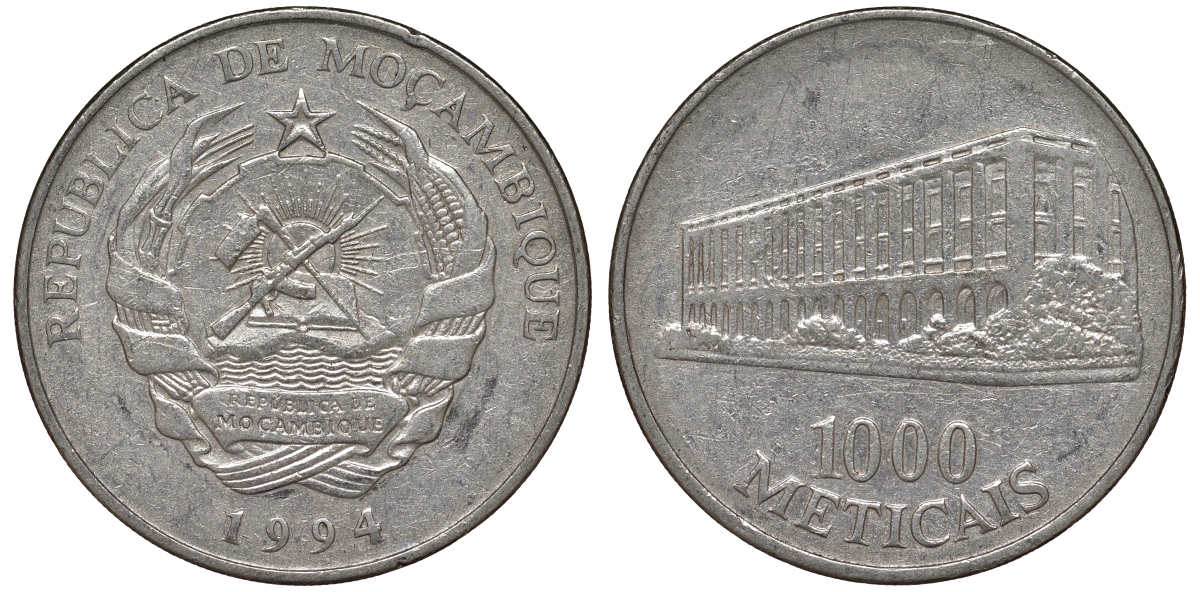 Мозамбик 1000 метикалей 1994 KM 122 никелированная сталь 4162-732