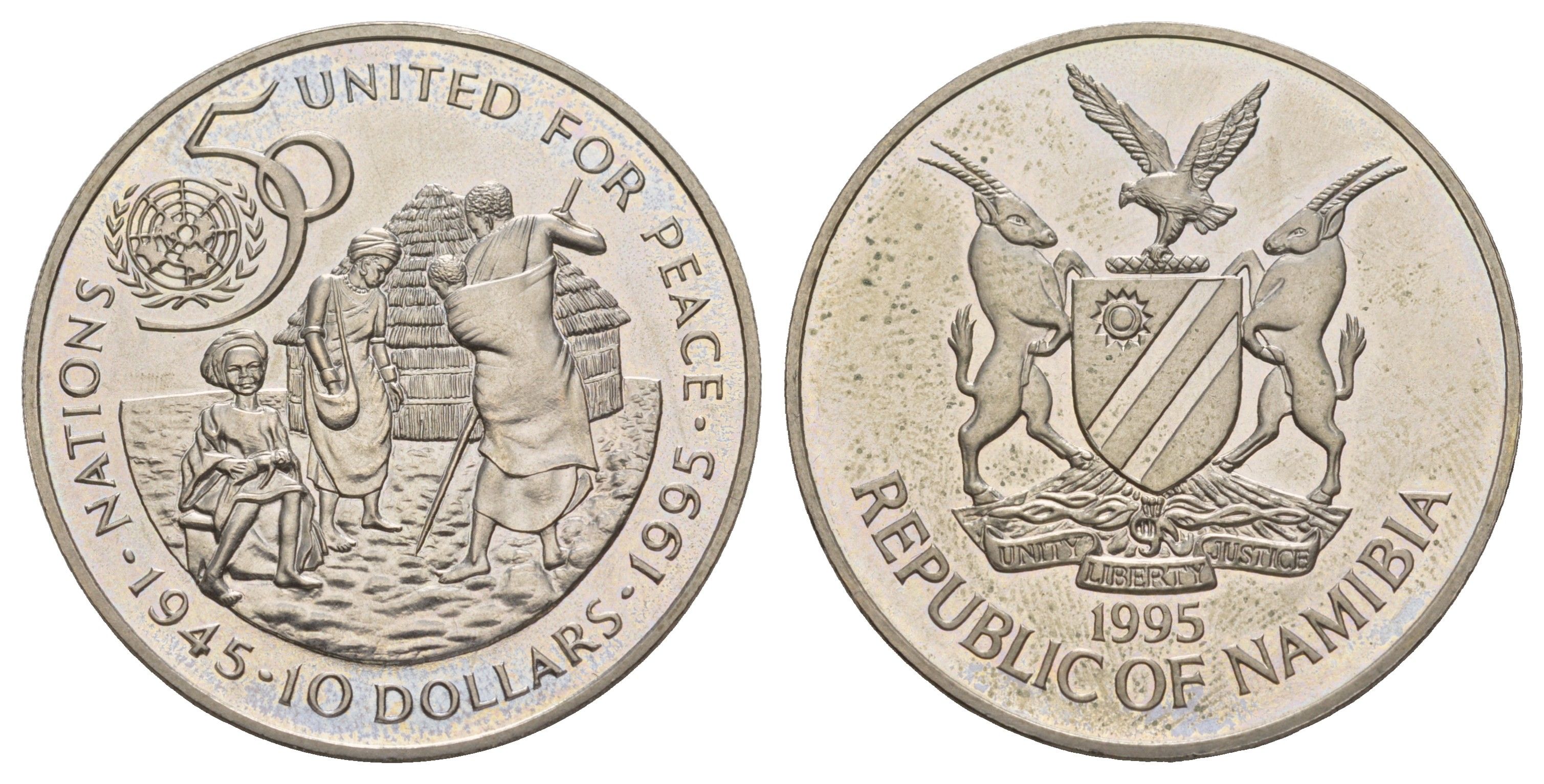 Намибия 10 долларов 1995 50 лет Организации Объединенных Наций (ООН) KM 9 медно-никель BU 413-3324