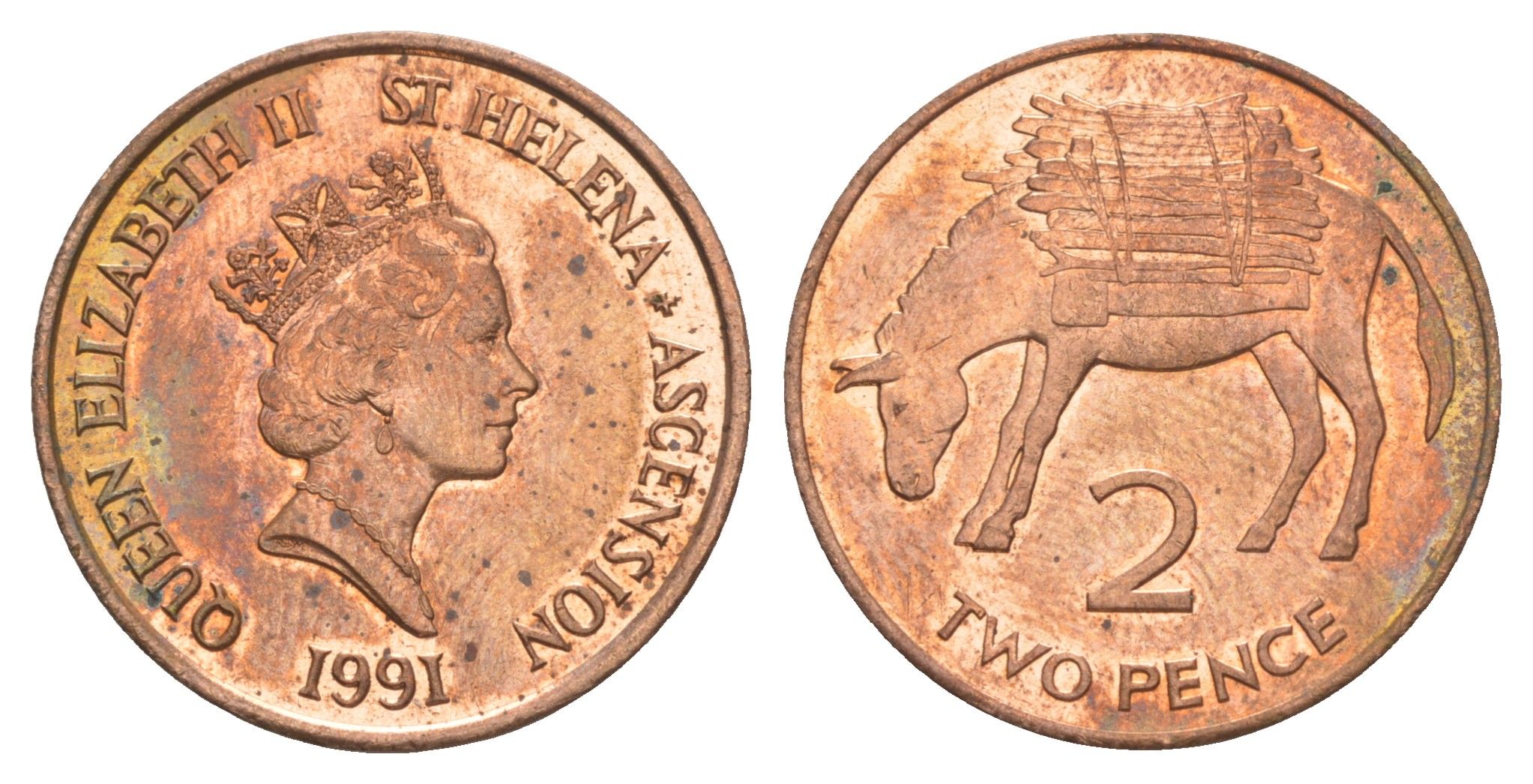Острова Святой Елены и Вознесения 2 пенса 1991 KM 12 бронза UNC 603-1441