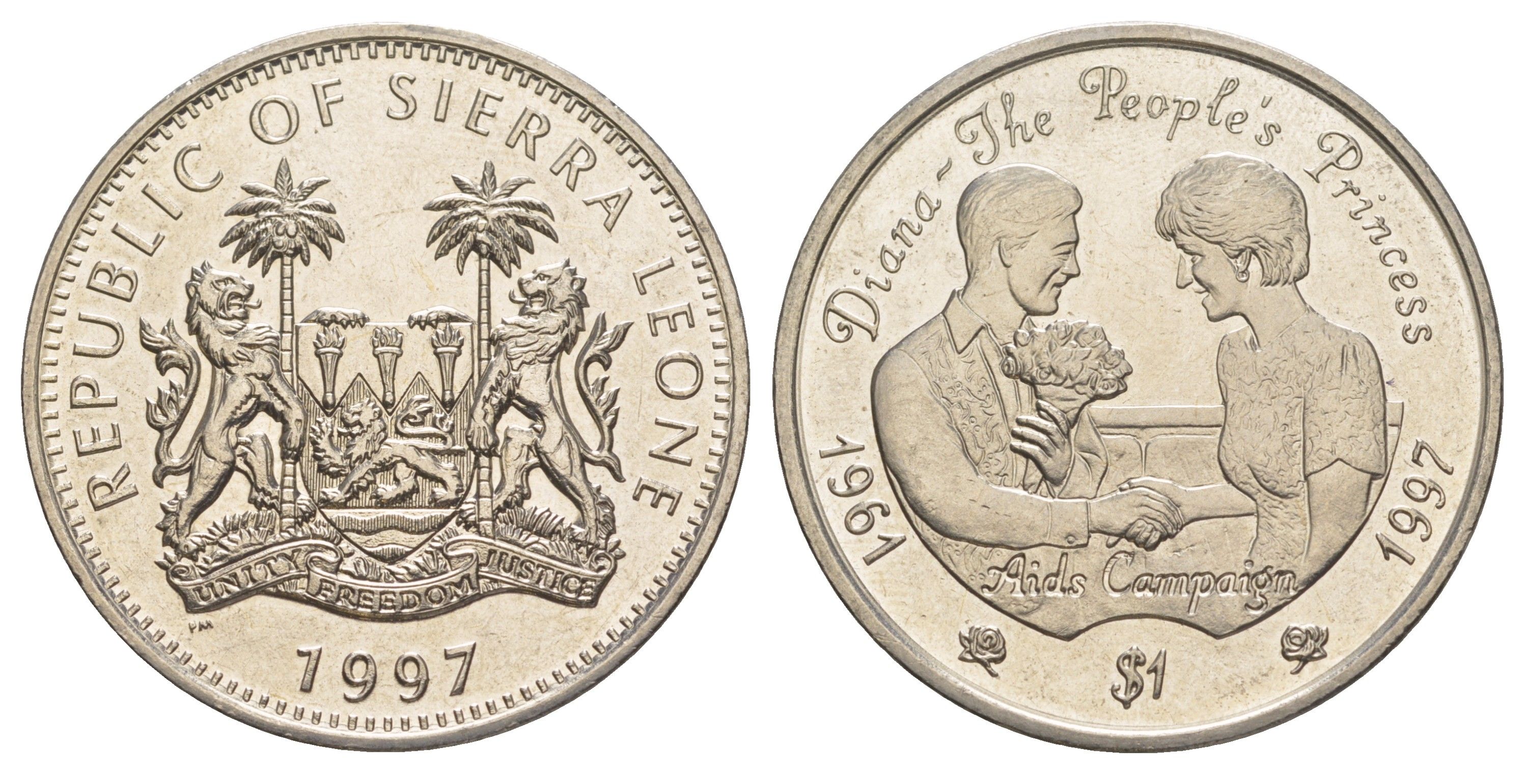 Сьерра-Леоне 1 доллар 1997 Диана - Народная принцесса, Кампания по борьбе со СПИДом KM 83 медно-никель BU 1521-1324