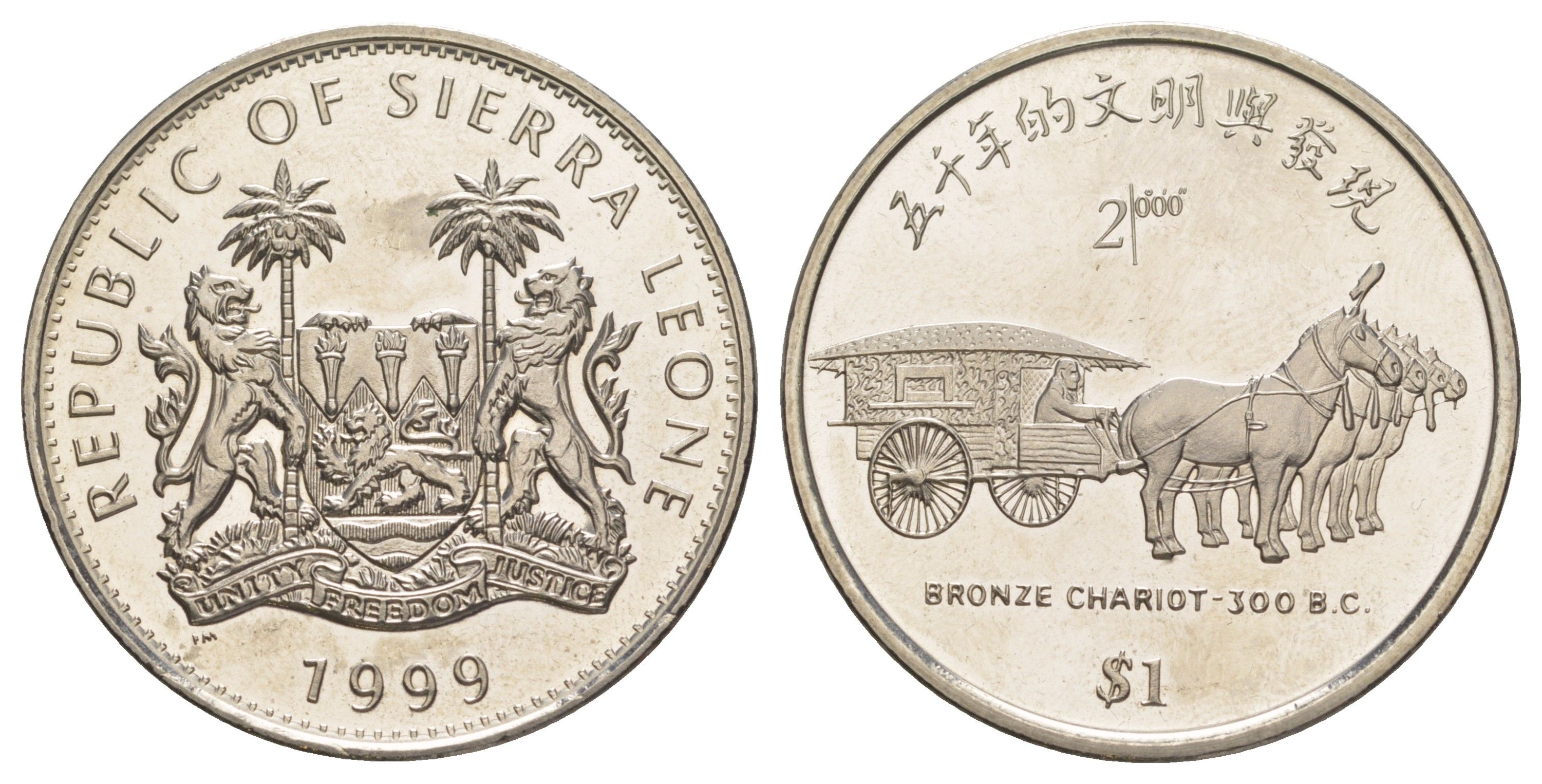 Сьерра-Леоне 1 доллар 1999 Китай 2000 - Бронзовая колесница KM 127 медно-никель 1521-1411