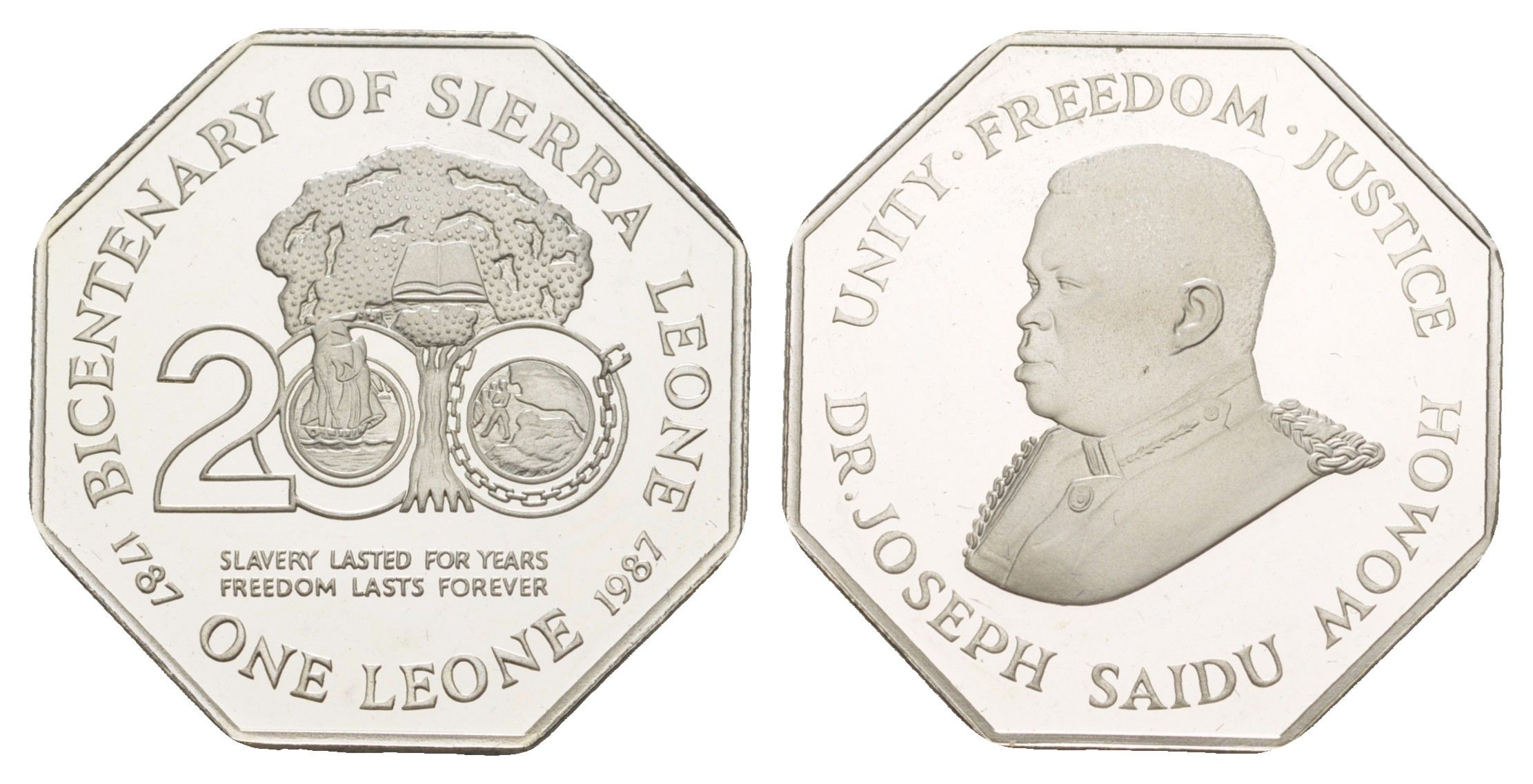 Сьерра-Леоне 1 леоне 1987 200 лет Сьерра-Леоне, тираж 3.000 экземпляров KM 40 серебро PROOF 1522-1445