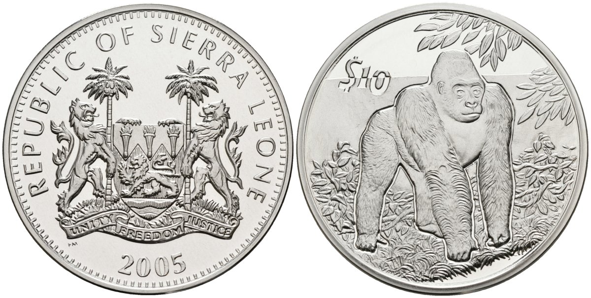 Сьерра-Леоне 10 долларов 2005 серия защита окружающей среды, гориллы, тираж 10000 экз. серебро PROOF 00-00