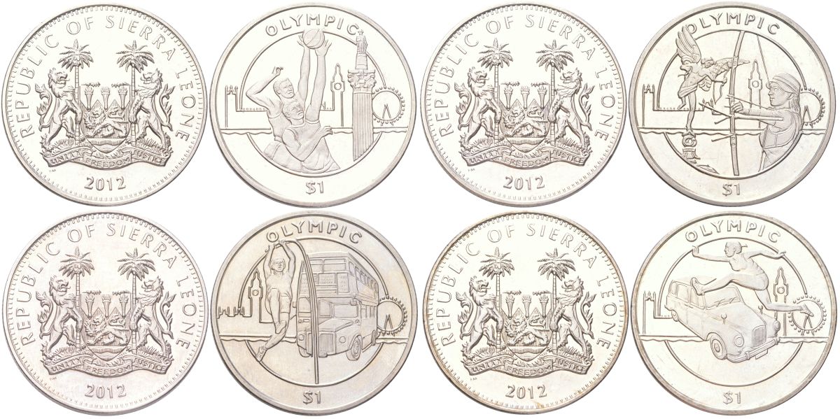 Сьерра-Леоне полный набор из 4 монет (1 доллар) 2012 XXX летние Олимпийские Игры, Лондон 2012 KM 376, 377, 378 и 379 медно-никель BU M78-21