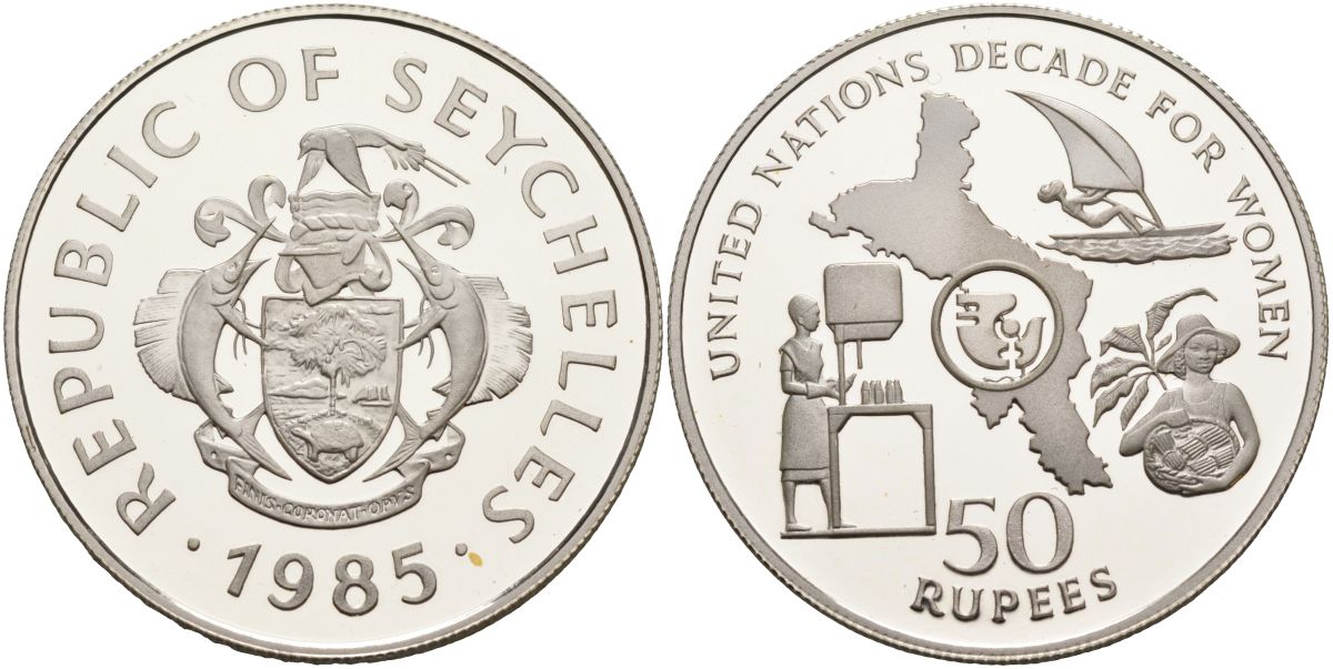 -Сейшельские острова 50 рупий 1985 год женщин, тираж 500 экз. KM 54 серебро PROOF 1098-4-24ТунисЮАРАлжирСвазилендСомалиСуданСьерра-ЛеонеТанзанияТогоУгандаФранцузская Западная АфрикаЦентрально-Африканские ШтатыЭкваториальная ГвинеяЭритреяЭфиопияСан-Томе и ПрисипиГвинея-БисауБенинБельгийское КонгоБерег слоновой костиМалиНигерОстров ВознесенияЧадЗападная СахараДжибутиЦентральноафриканская Республика (ЦАР)ГабонМавританияСомалилендБуркина ФасоРодезияАнголаБотсванаБританская Западная АфрикаБурундиВосточная АфрикаГамбияГанаГвинеяЕгипетЗаир (Катанга)ЗамбияЗападно-Африканские ШтатыЗимбабвеКабо-ВердеКамерунКенияКоморские островаКонгоЛесотоЛиберияЛивияМаврикийМадагаскарМалавиМароккоМозамбикНамибияНигерияОстров Святой ЕленыРуандаДругие страны
