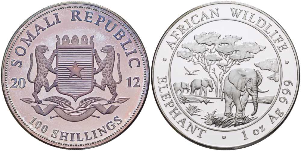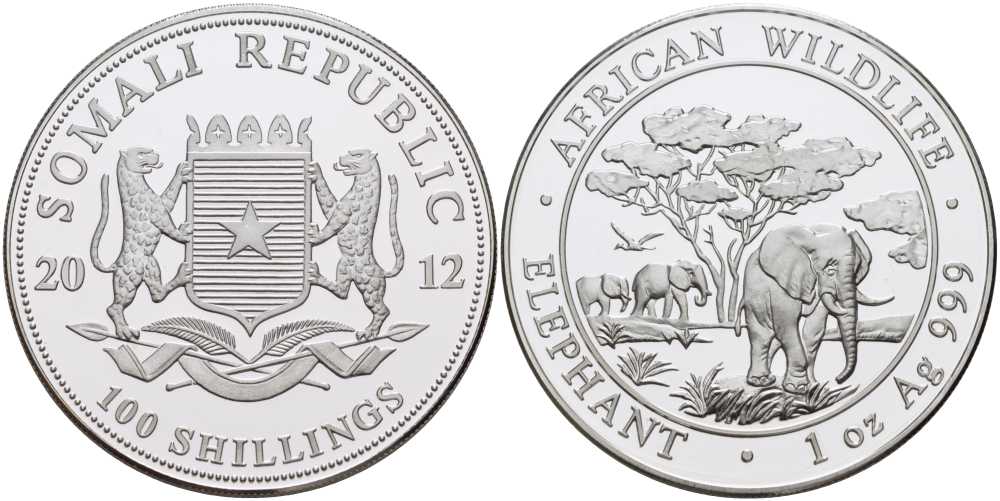 СОМАЛИ 100 ШИЛЛИНГОВ 2012 СЕРИЯ ОХРАНА ОКРУЖАЮЩЕЙ СРЕДЫ, АФРИКАНСКИЕ СЛОНЫ, 1 УНЦИЯ, 999 ПРОБА KM NEW серебро PROOF 1076-7-43