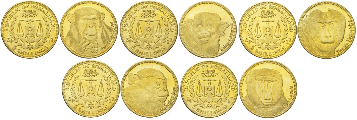 -Сомалиленд полный набор из 5 монет (5 шиллингов) 2017 Обезьяны KM 117, 118, 119, 120 и 121 латунь UNC 4612-751-755ТунисЮАРАлжирСвазилендСейшельские островаСомалиСуданСьерра-ЛеонеТанзанияТогоУгандаФранцузская Западная АфрикаЦентрально-Африканские ШтатыЭкваториальная ГвинеяЭритреяЭфиопияСан-Томе и ПрисипиГвинея-БисауБенинБельгийское КонгоБерег слоновой костиМалиНигерОстров ВознесенияЧадЗападная СахараДжибутиЦентральноафриканская Республика (ЦАР)ГабонМавританияБуркина ФасоРодезияАнголаБотсванаБританская Западная АфрикаБурундиВосточная АфрикаГамбияГанаГвинеяЕгипетЗаир (Катанга)ЗамбияЗападно-Африканские ШтатыЗимбабвеКабо-ВердеКамерунКенияКоморские островаКонгоЛесотоЛиберияЛивияМаврикийМадагаскарМалавиМароккоМозамбикНамибияНигерияОстров Святой ЕленыРуандаДругие страны