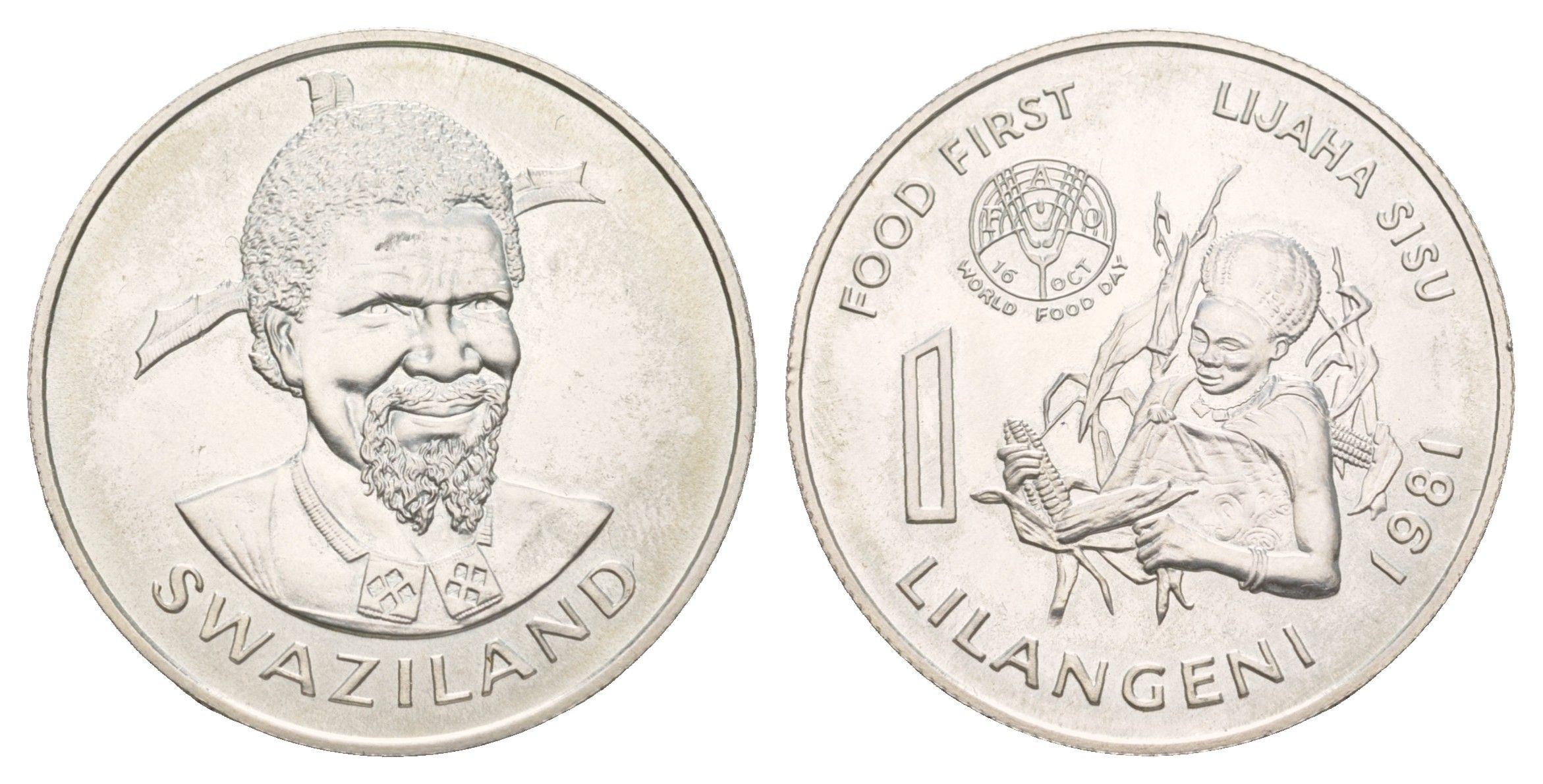 ----Свазиленд 1 лилангени 1981 ФАО - Еда прежде всего KM 32a серебро BU 413-3322