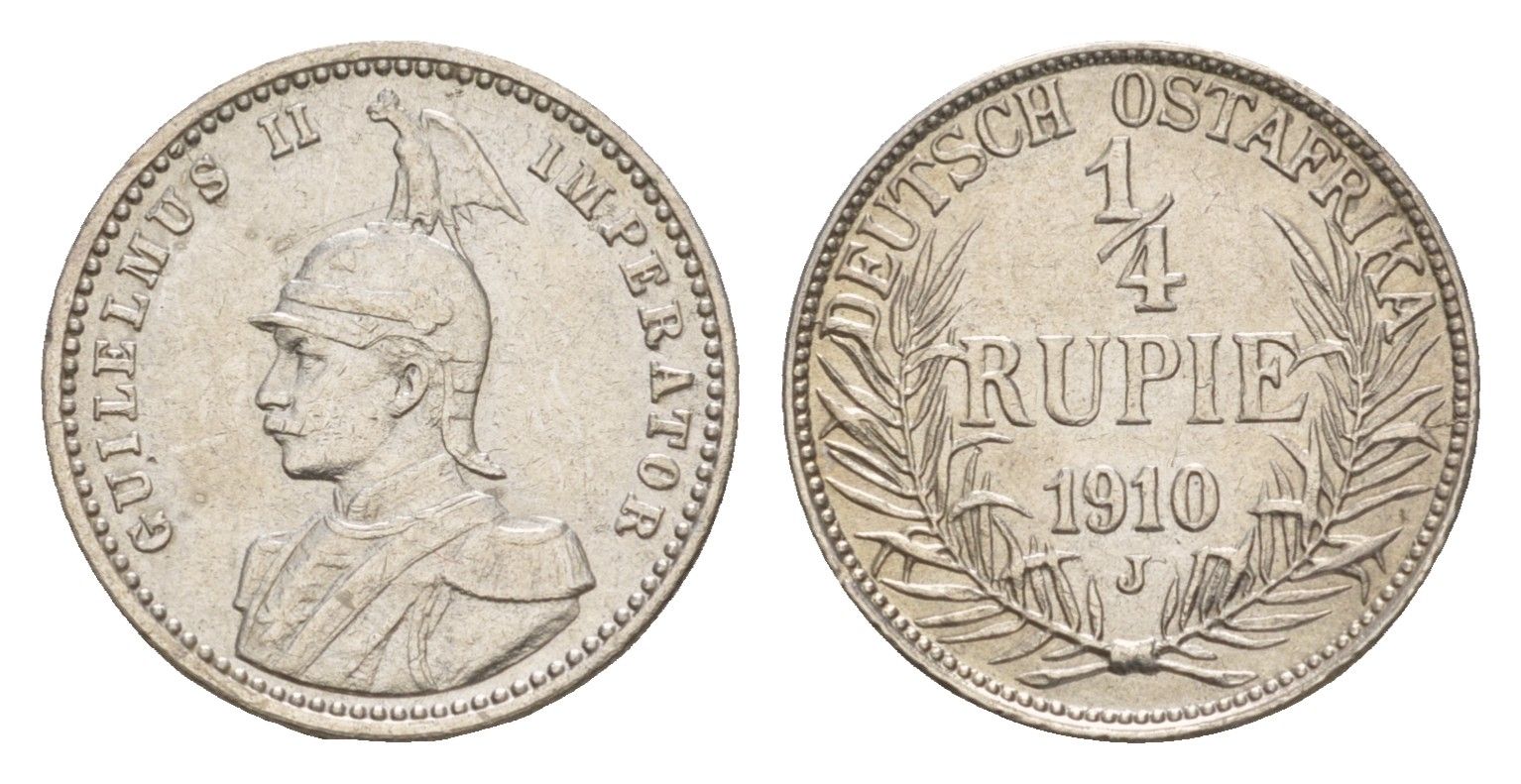 Германская Восточная Африка 1/4 рупии 1910 J KM 8 серебро 603-834