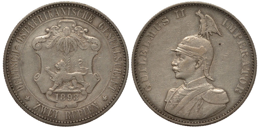 Германская Восточная Африка, Танзания 2 рупии 1893 KM 5, ASK 914, J.714 серебро 00-819-36