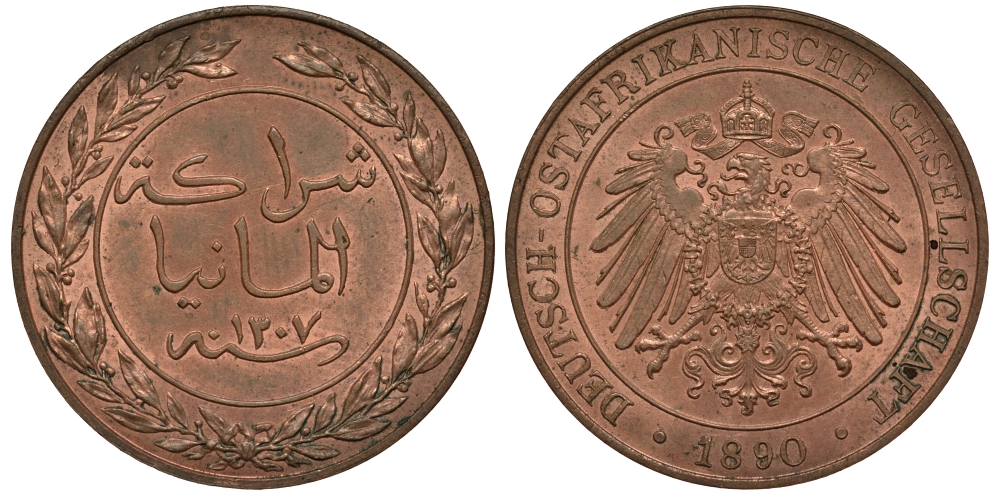 НЕМЕЦКАЯ ВОСТОЧНАЯ АФРИКА (ТАНЗАНИЯ) 1 ПЕСА 1890 OST-AFRICA Jaeger 710, KM 1 медь UNC 413-6532