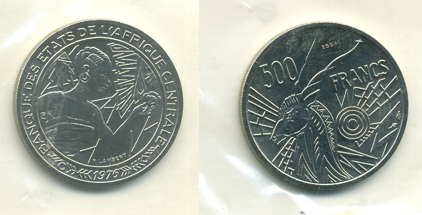 ЦЕНТРАЛЬНО-АФРИКАНСКИЕ ШТАТЫ 500 ФРАНКОВ 1976 PROBA, ESSAI, КОНГО, в оригинальной упаковке KM E9 никель UNC 5010-133