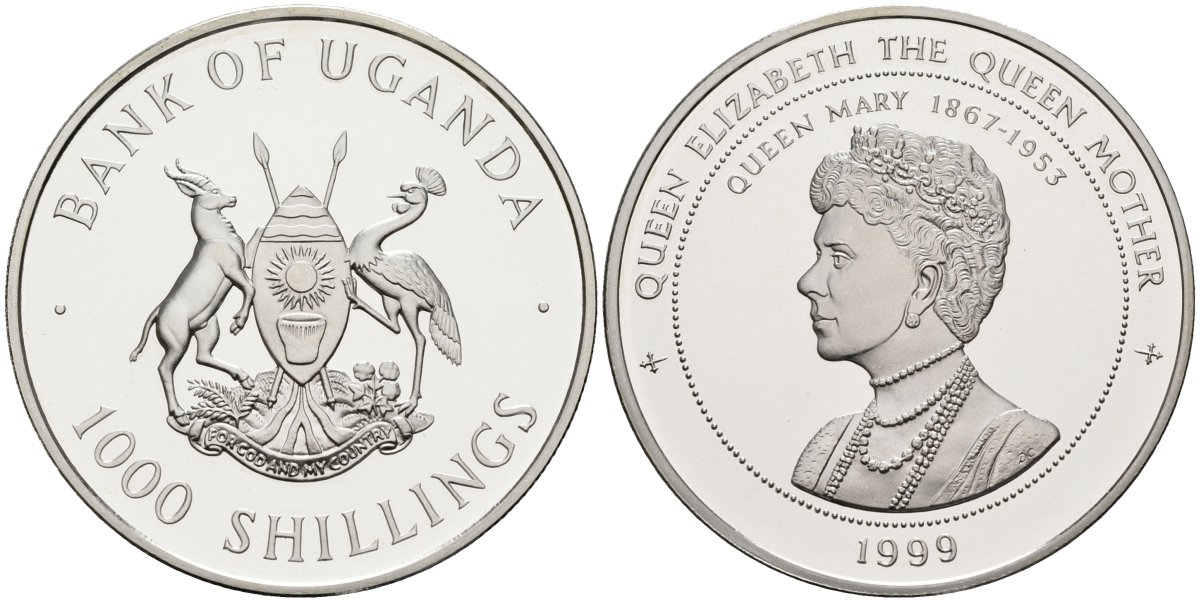 ----Уганда 1000 шиллингов 1999 серия королева Елизавета-королева мать, королева Мария Текская (1867-1953), тираж 30000 экз. серебро PROOF 1078-5-23