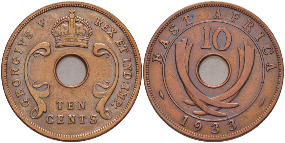 Британская Восточная Африка 10 центов 1933 Георг V (1910-1936) KM 19 бронза 4380-644