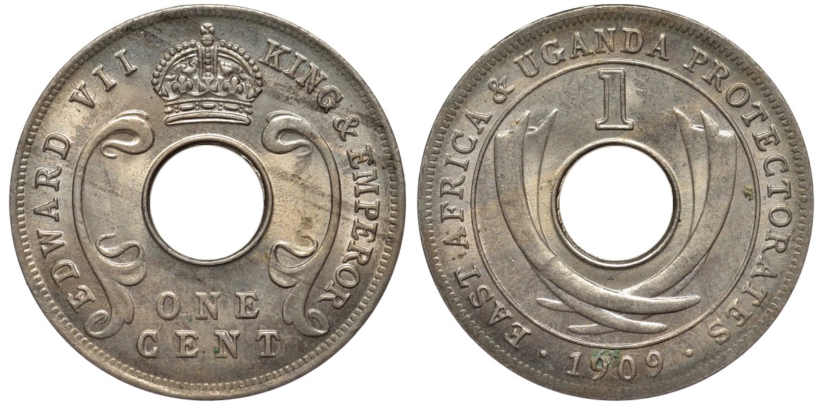 Британская Восточная Африка и Уганда 1 цент 1909 Эдуард VII (1902-1910) KM 5a медно-никель UNC 4556-543