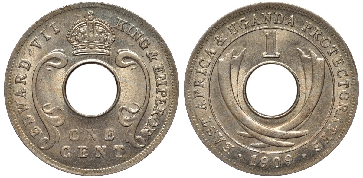 Британская Восточная Африка и Уганда 1 цент 1909 Эдуард VII (1902-1910) KM 5a медно-никель UNC 77-552