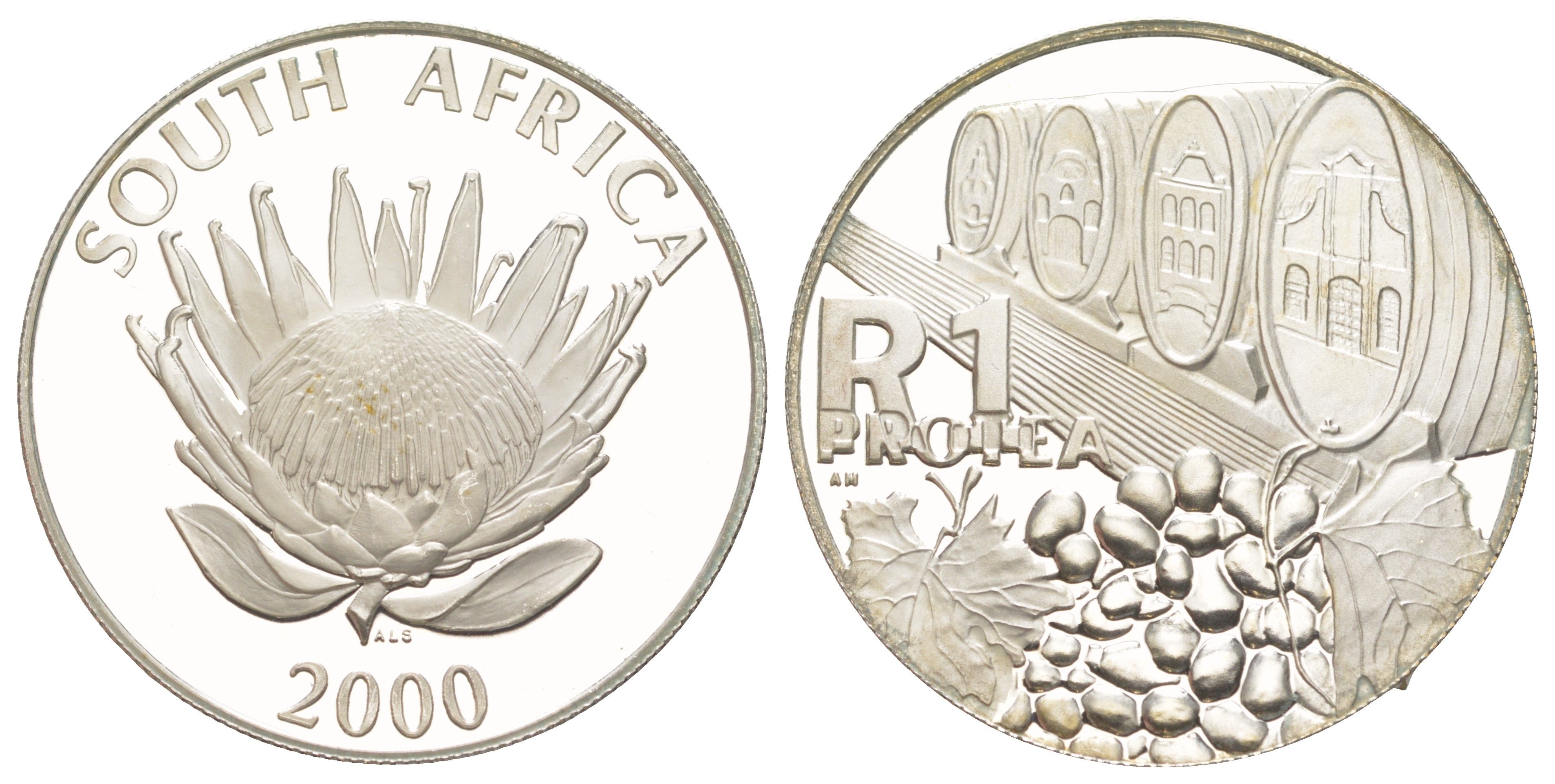----ЮАР 1 ранд 2000 Индустрия в Южной Африке - Виноградарство, тираж 1.519 экземпляров KM 238 серебро PROOF 443-645