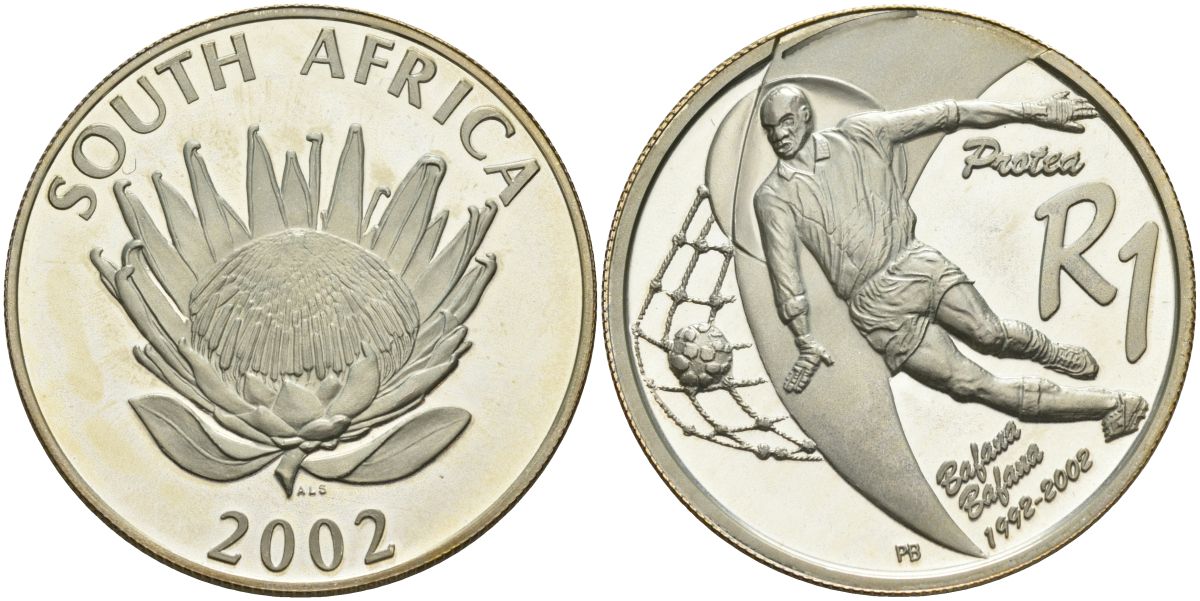 --ЮАР 1 ранд 2002 чемпионат мира по футболу в Южной Корее и Японии KM 277 серебро PROOF 1096-2-12ТунисУгандаБенинГвинея-БисауЮАРЭфиопияЭритреяЭкваториальная ГвинеяЦентрально-Африканские ШтатыФранцузская Западная АфрикаБельгийское КонгоТогоТанзанияСьерра-ЛеонеСуданСомалиСейшельские островаСвазилендБерег слоновой костиМалиНигерОстров ВознесенияЧадЗападная СахараДжибутиЦентральноафриканская Республика (ЦАР)ГабонМавританияСомалилендБуркина ФасоГвинеяКенияКамерунКабо-ВердеЗимбабвеЗападно-Африканские ШтатыЗамбияЗаир (Катанга)ЕгипетКоморские островаГанаГамбияВосточная АфрикаБурундиБританская Западная АфрикаБотсванаАнголаМалавиСан-Томе и ПрисипиРуандаРодезияОстров Святой ЕленыНигерияНамибияМозамбикМароккоАлжирМадагаскарМаврикийЛивияЛиберияЛесотоКонгоДругие страны