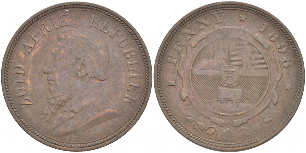 Южно-Африканская Республика, Трансвааль 1 пенни 1898 Пауль Крюгер KM 2 медь 180-832