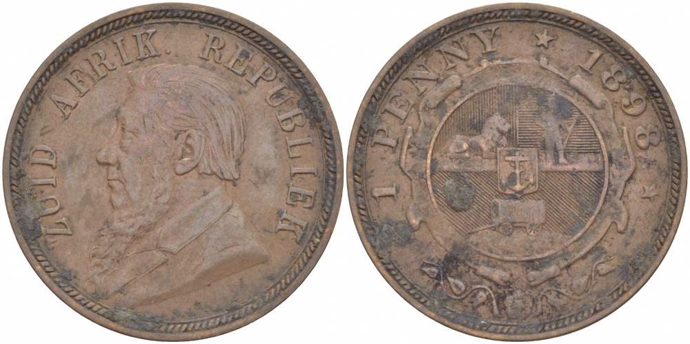 Южно-Африканская Республика, Трансвааль 1 пенни 1898 Пауль Крюгер KM 2 медь 180-836