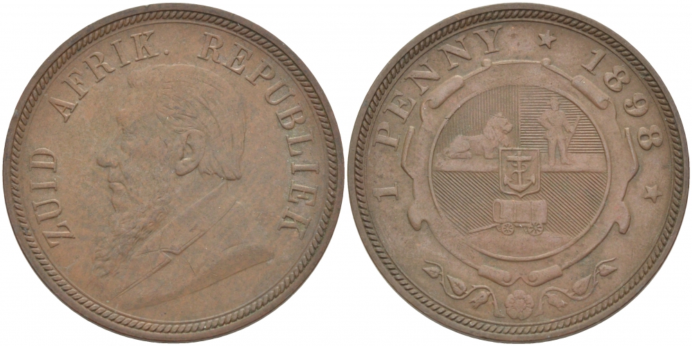 Южно-Африканская Республика, Трансвааль 1 пенни 1898 Пауль Крюгер KM 2 медь 180-913