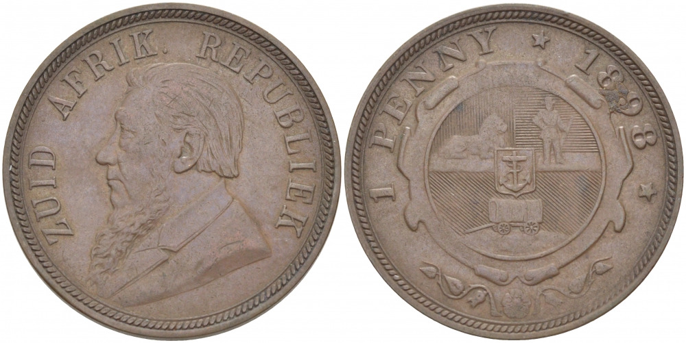 Южно-Африканская Республика, Трансвааль 1 пенни 1898 Пауль Крюгер KM 2 медь 180-914