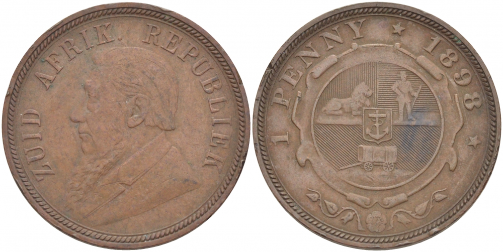 Южно-Африканская Республика, Трансвааль 1 пенни 1898 Пауль Крюгер KM 2 медь 180-934