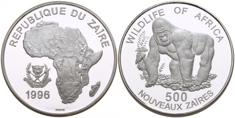 Заир 500 новых заиров 1996 серия защита окружающей среды, горилла, тираж 10000 экземпляров KM 21 серебро PROOF 1087-2-12