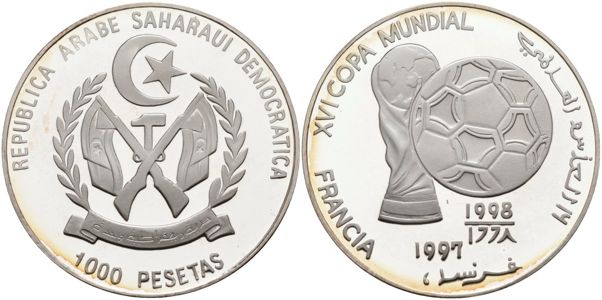 -Западная Сахара 1000 песет 1997 XVI чемпионат мира по футболу 1998 года во Франции KM 46 серебро PROOF 00-000-00ТунисЮАРАлжирСвазилендСейшельские островаСомалиСуданСьерра-ЛеонеТанзанияТогоУгандаФранцузская Западная АфрикаЦентрально-Африканские ШтатыЭкваториальная ГвинеяЭритреяЭфиопияСан-Томе и ПрисипиГвинея-БисауБенинБельгийское КонгоБерег слоновой костиМалиНигерОстров ВознесенияЧадДжибутиЦентральноафриканская Республика (ЦАР)ГабонМавританияСомалилендБуркина ФасоРодезияАнголаБотсванаБританская Западная АфрикаБурундиВосточная АфрикаГамбияГанаГвинеяЕгипетЗаир (Катанга)ЗамбияЗападно-Африканские ШтатыЗимбабвеКабо-ВердеКамерунКенияКоморские островаКонгоЛесотоЛиберияЛивияМаврикийМадагаскарМалавиМароккоМозамбикНамибияНигерияОстров Святой ЕленыРуандаДругие страны