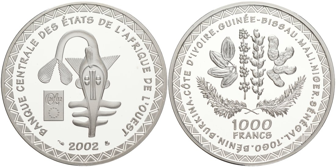 -Валютный Союз стран Западной Африки 1000 франков 2002 тираж 500 экземпляров KM 16 серебро PROOF 00-00ТунисЮАРАлжирСвазилендСейшельские островаСомалиСуданСьерра-ЛеонеТанзанияТогоУгандаФранцузская Западная АфрикаЦентрально-Африканские ШтатыЭкваториальная ГвинеяЭритреяЭфиопияСан-Томе и ПрисипиГвинея-БисауБенинБельгийское КонгоБерег слоновой костиМалиНигерОстров ВознесенияЧадЗападная СахараДжибутиЦентральноафриканская Республика (ЦАР)ГабонМавританияСомалилендБуркина ФасоРодезияАнголаБотсванаБританская Западная АфрикаБурундиВосточная АфрикаГамбияГанаГвинеяЕгипетЗаир (Катанга)ЗамбияЗимбабвеКабо-ВердеКамерунКенияКоморские островаКонгоЛесотоЛиберияЛивияМаврикийМадагаскарМалавиМароккоМозамбикНамибияНигерияОстров Святой ЕленыРуандаДругие страны
