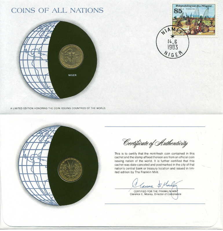 Западная Африка (ВСЕАО) 5 франков 1982 Нигер, конверт с маркой первого дня гашения, Coins of Nations KM 2a медь алюминий никель UNC 4294-57-3
