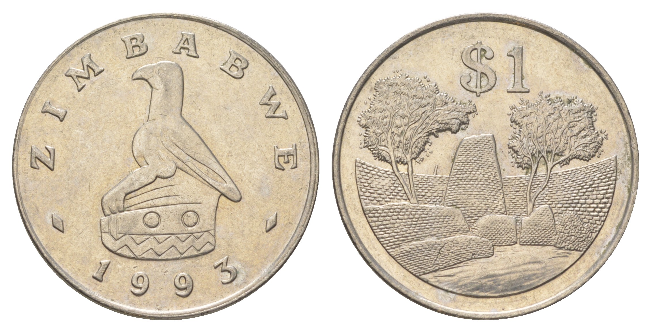Зимбабве 1 доллар 1993 руины большого Зимбабве KM 6 медно-никель M65-14