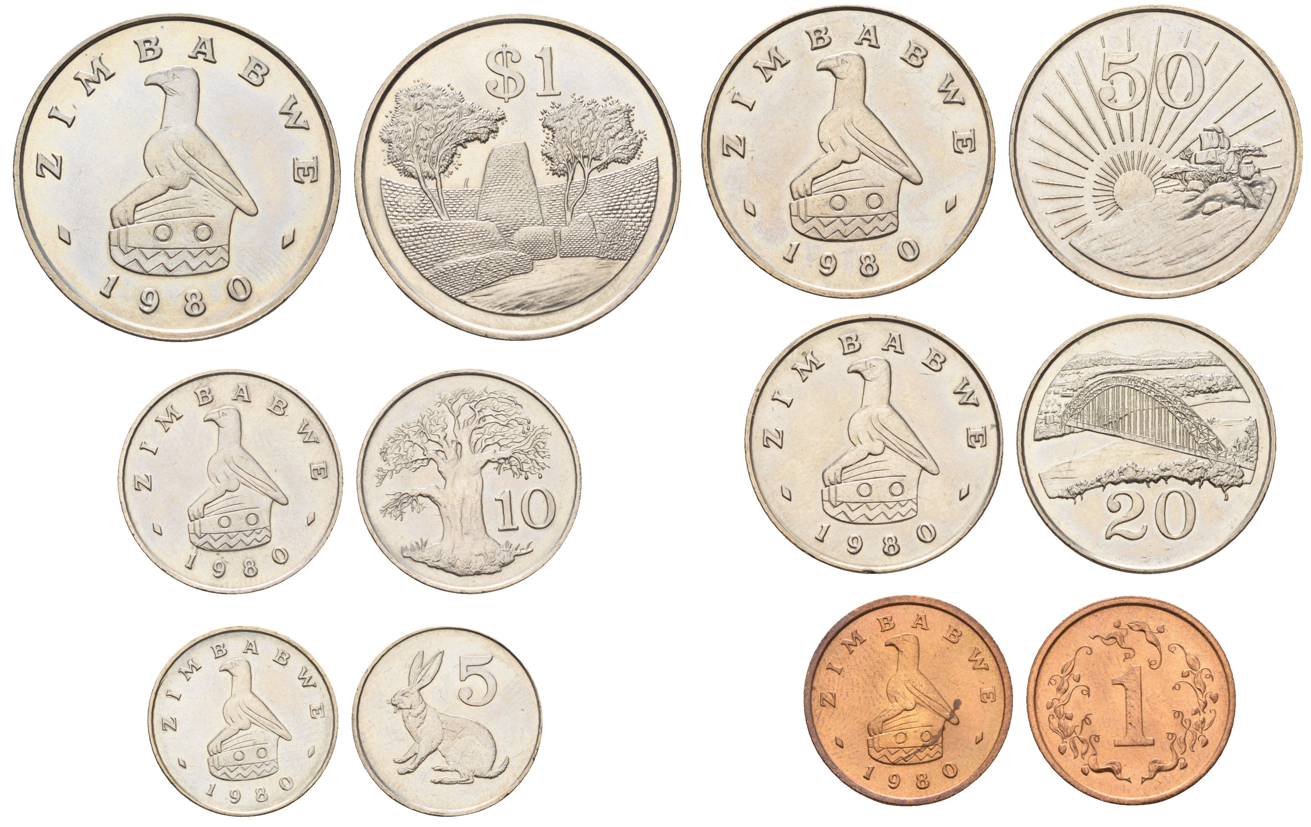 Зимбабве годовой набор из 6 монет (1, 5, 10, 20 и 50 центов; 1 доллар) 1980 KM 1, 2, 3, 4, 5 и 6 UNC 4670-1111-1115