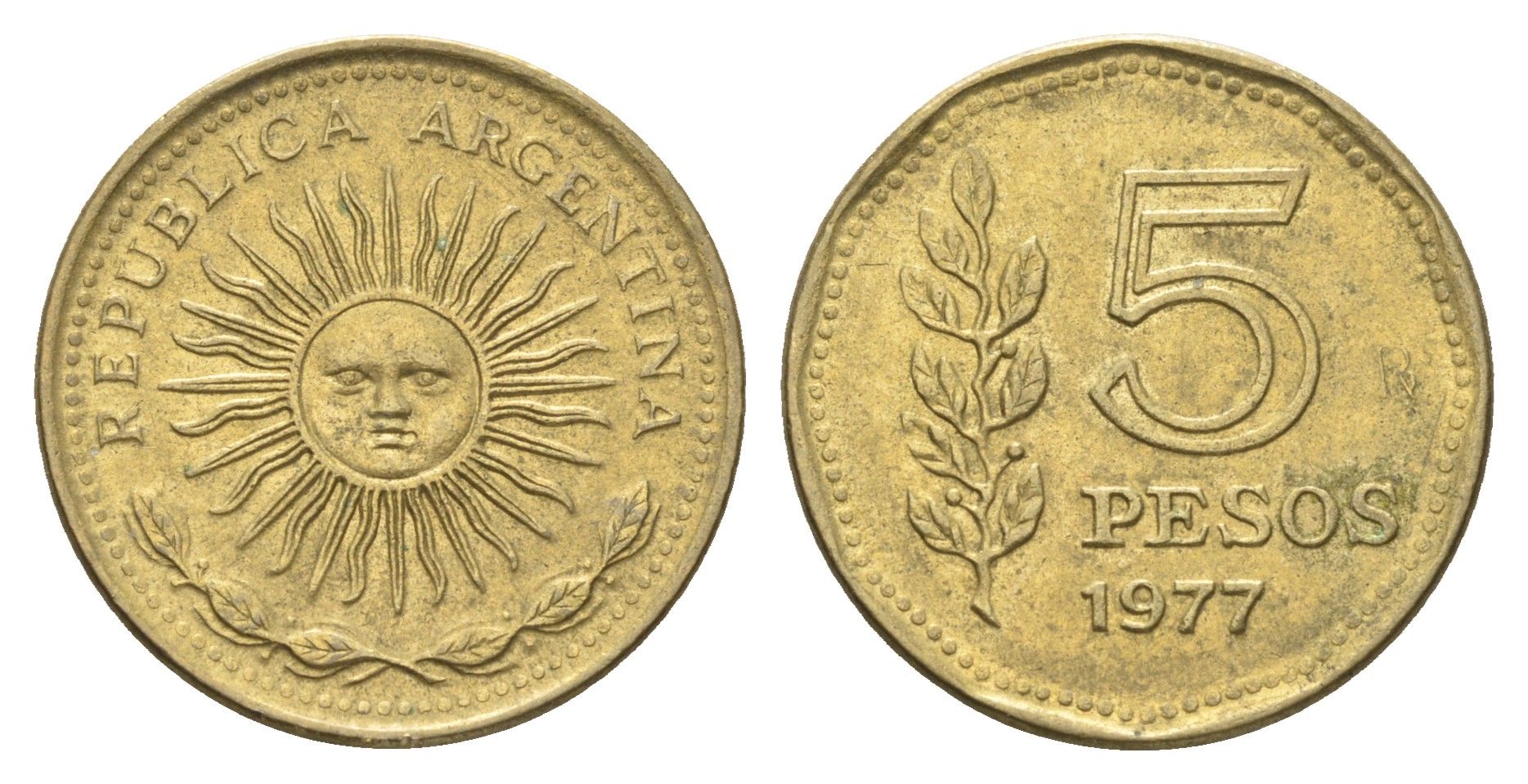 Аргентина 5 песо 1977 KM 71 алюминиевая бронза aUNC 4662-734