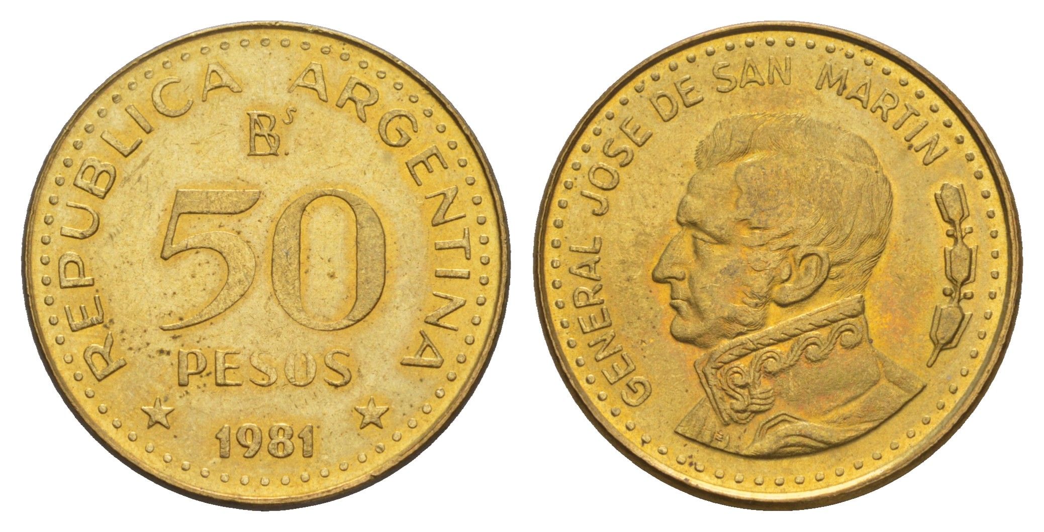 Аргентина 50 песо 1981 KM 83a сталь плакированная латунью UNC 4656-1145