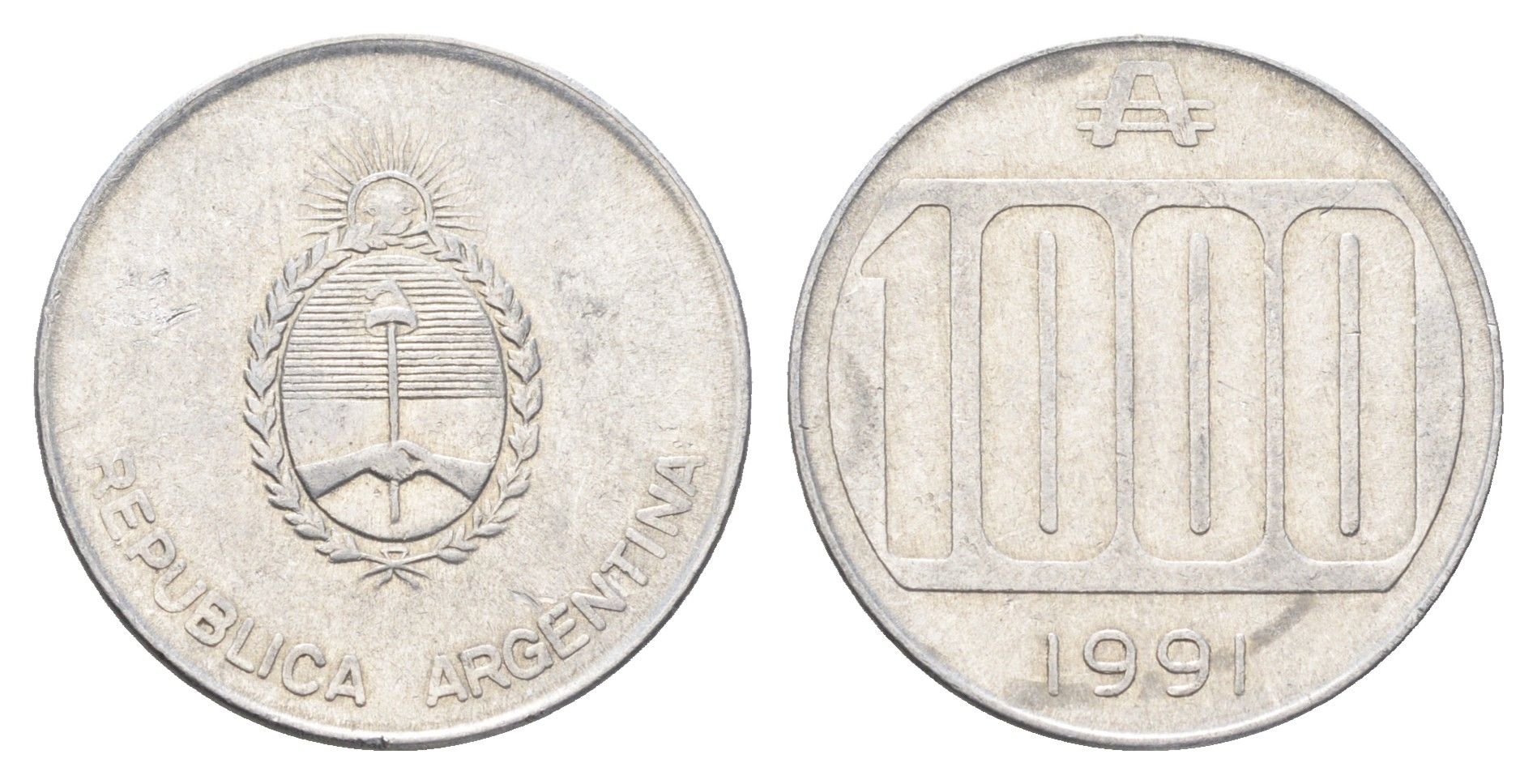 Аргентина 1000 аустралей 1991 KM 105 алюминий 4662-747