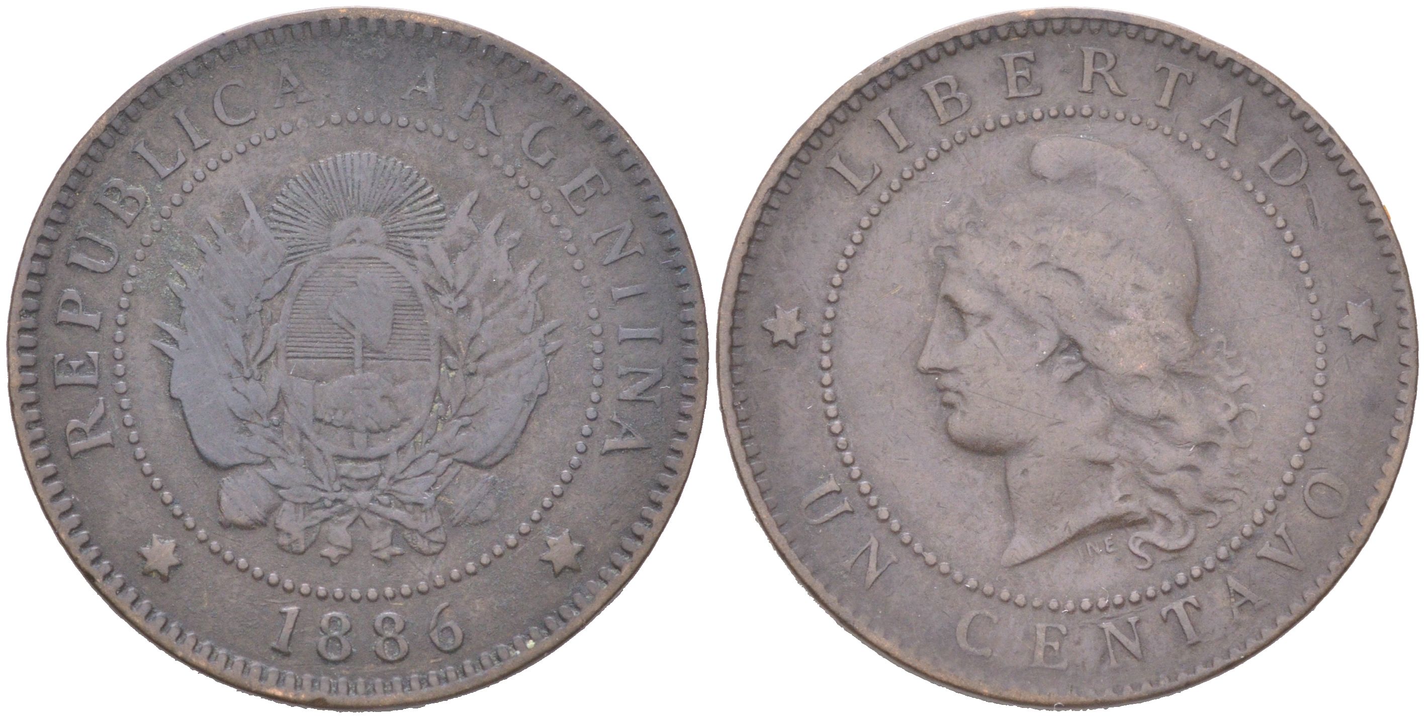 Аргентина 1 сентаво 1886 KM 32 бронза 4620-925