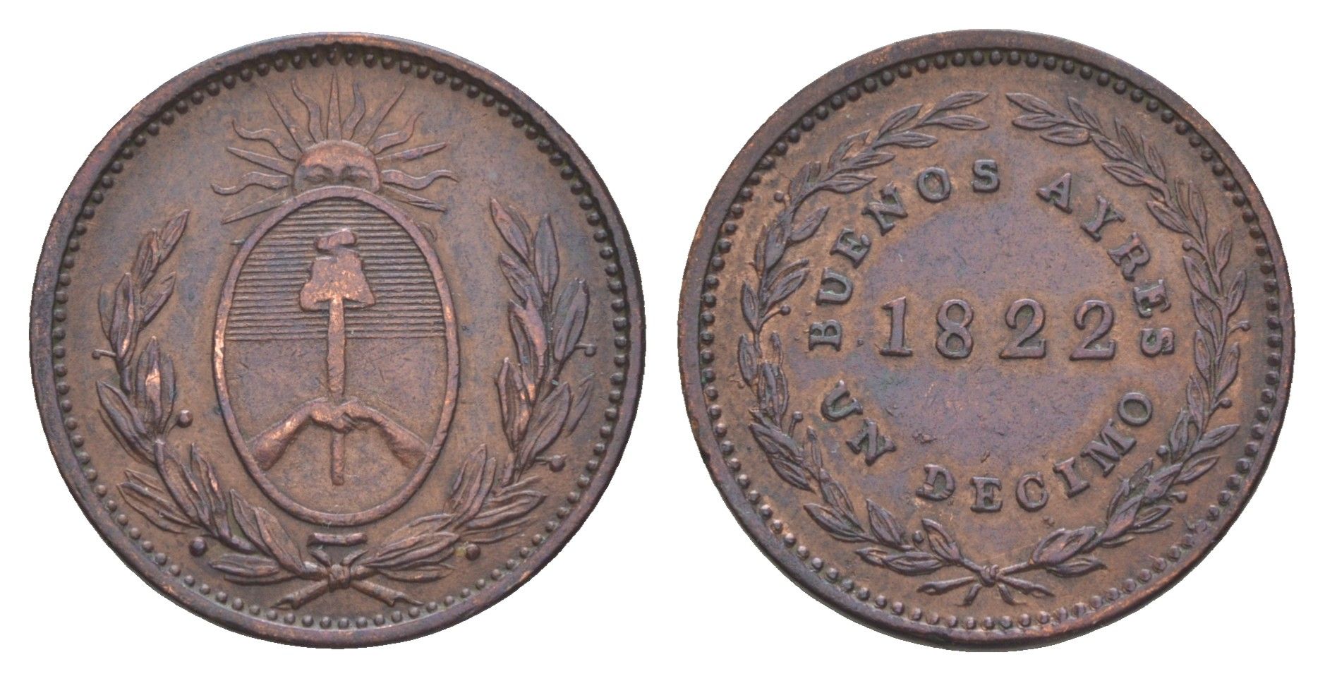 Аргентина, Буэнос-Айрес 1 десим = /10 реала 1822 KM 1 медь 413-514