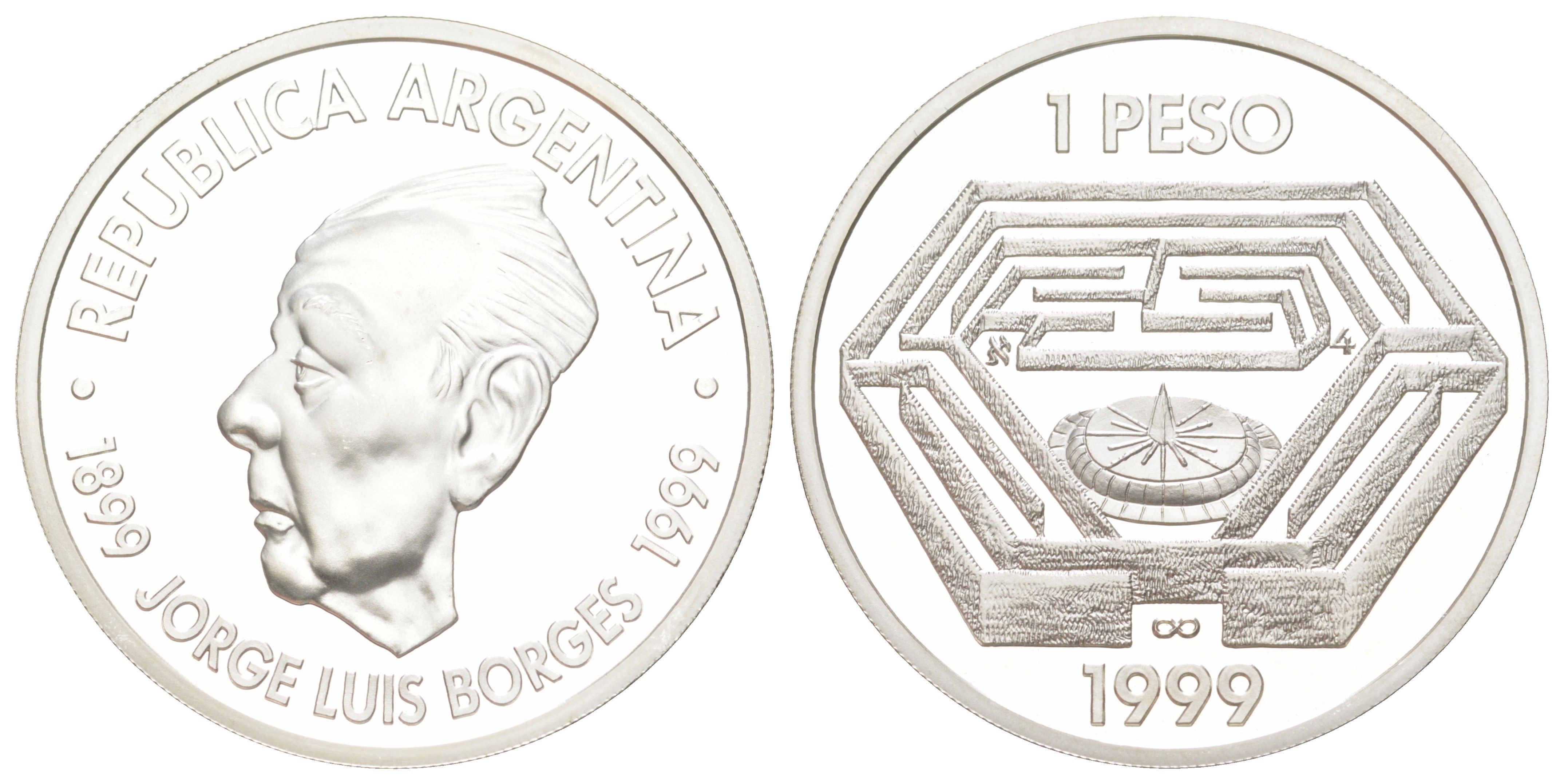 --Аргентина 1 песо 1999 100 лет со дня рождения Хорхе Луиса Борхеса KM 127 серебро PROOF 00-903-07Фолклендские островаНикарагуаПанамаПарагвайПеруСальвадорСуринамСШАТеркс и КайкосТринидад и ТобагоТристан-да-КуньяУругвайНидерландские АнтилыЧилиЭквадорЮжная Георгия и Южные Сандвичевы островаЯмайкаДругоеКаймановы островаГавайские островаГайанаАрубаБагамские островаБарбадосБелизБермудские островаБоливияБразилияВенесуэлаВиргинские островаВосточно-Карибские государстваГаитиАргентинаГваделупаГватемалаГондурасДоминиканская РеспубликаКанадаКолумбияКоста-РикаКубаКюрасаоМексика