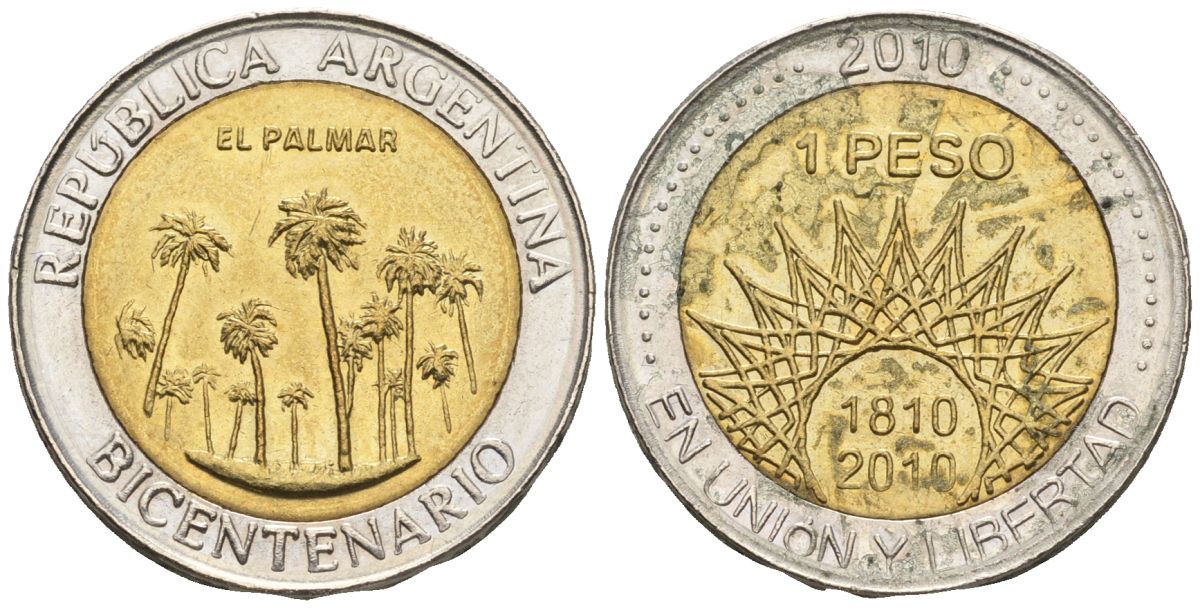 Аргентина 1 песо 2010 200 лет Аргентине - парк Эль-Палмар KM 156, CJ 6.21, Schon 166 биметалл 60-832