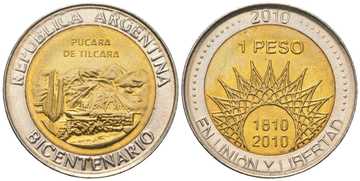 Аргентина 1 песо 2010 200 лет Аргентине - развалины крепости Пукара около г. Тилькара KM 159 биметалл UNC 4620-645