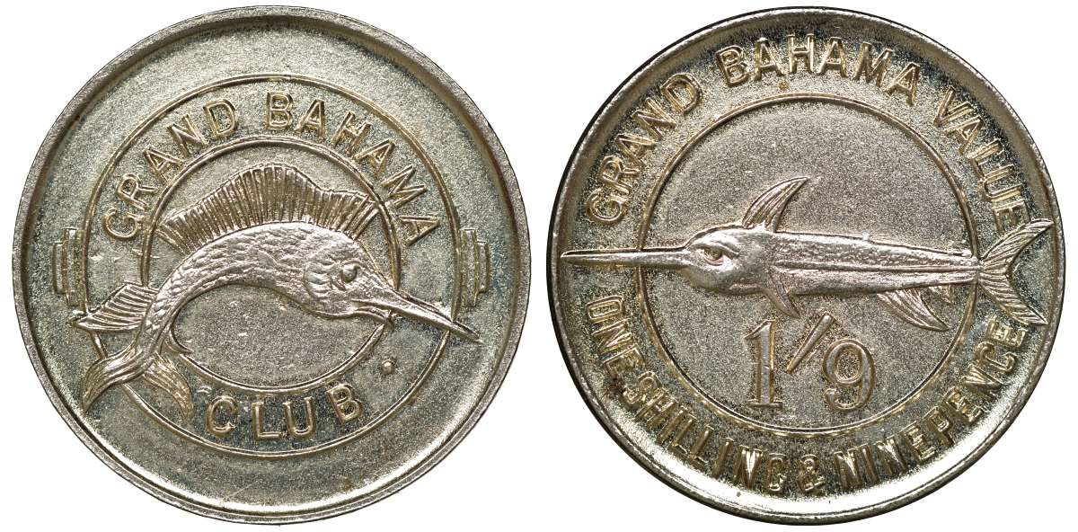 Багамские острова 1 шиллинг и 9 пенни ND Жетоны гранд Багамы клуб никель 00-00