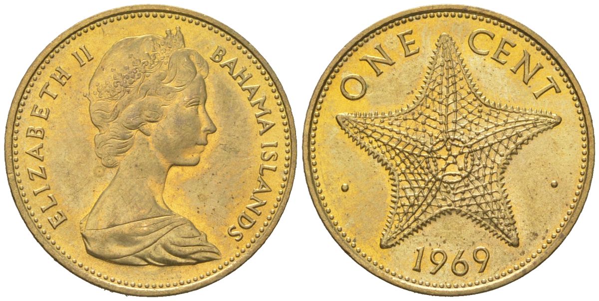 Багамские острова (Багамы) 1 цент 1969 KM 2 никель латунь UNC 4580-1112