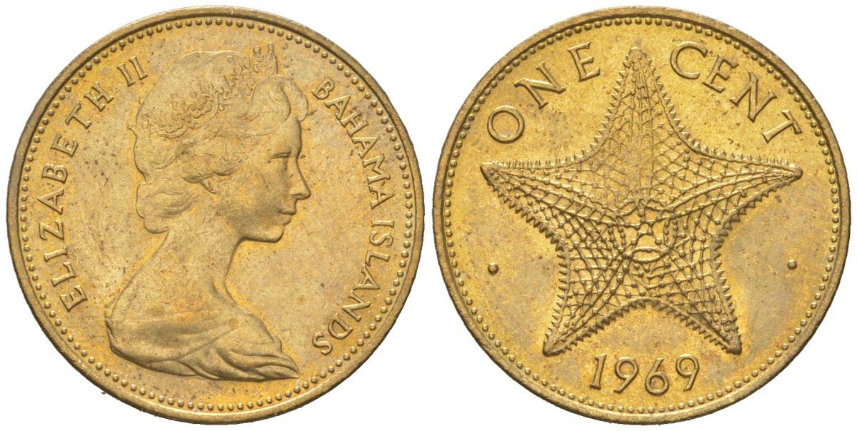 Багамские острова (Багамы) 1 цент 1969 KM 2 никель латунь UNC 4580-959