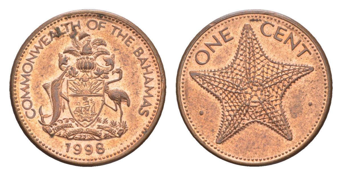 Багамские острова (Багамы) 1 цент 1998 KM 59a цинк плакированный медью UNC 4632-111